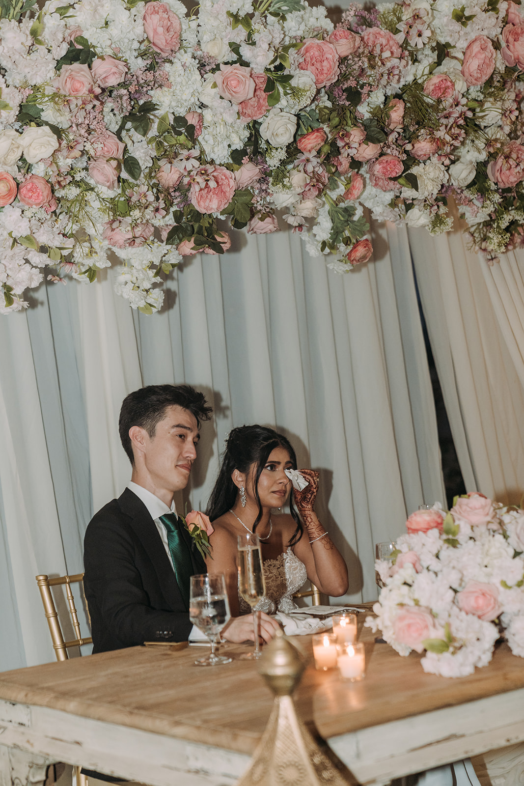 The Western ceremony was incredibly emotional. The atmosphere shifted from vibrant celebration to something softer and more intimate. There was a depth to this part of the day that you could feel immediately, in the way they looked at each other, in the quiet moments before the ceremony began, and in the reactions of their guests. It was one of those ceremonies where the emotion felt tangible. Following the ceremony, the celebration continued with the support of an amazing vendor team. From the artistry of the florals to the music that carried guests into the evening, every detail came together beautifully. The cake from Konditor Meister was a sweet finishing touch, and catering by Rasoi Restaurant RI and Pranzi Catering ensured guests were well taken care of throughout the night.