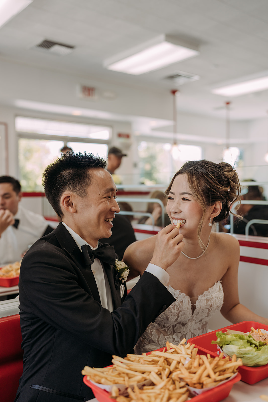 Their wedding day reflected who they are in the most authentic way: joyful, thoughtful, and community-centered. The celebration was filled with intentional touches that felt both playful and meaningful. In the middle of the day, they snuck away for In-N-Out, carving out a moment for themselves amidst the excitement. It was relaxed, fun, and perfectly aligned with their personalities. Later, they surprised their guests with a lineup of unforgettable treats: a churro truck from Churros El Guero, a boba bar by Boba Passion, and bao buns from Bun Me Up. Each surprise added another layer of delight to the evening and created an atmosphere that felt less like a formal event and more like an experience designed with their favorite people in mind.